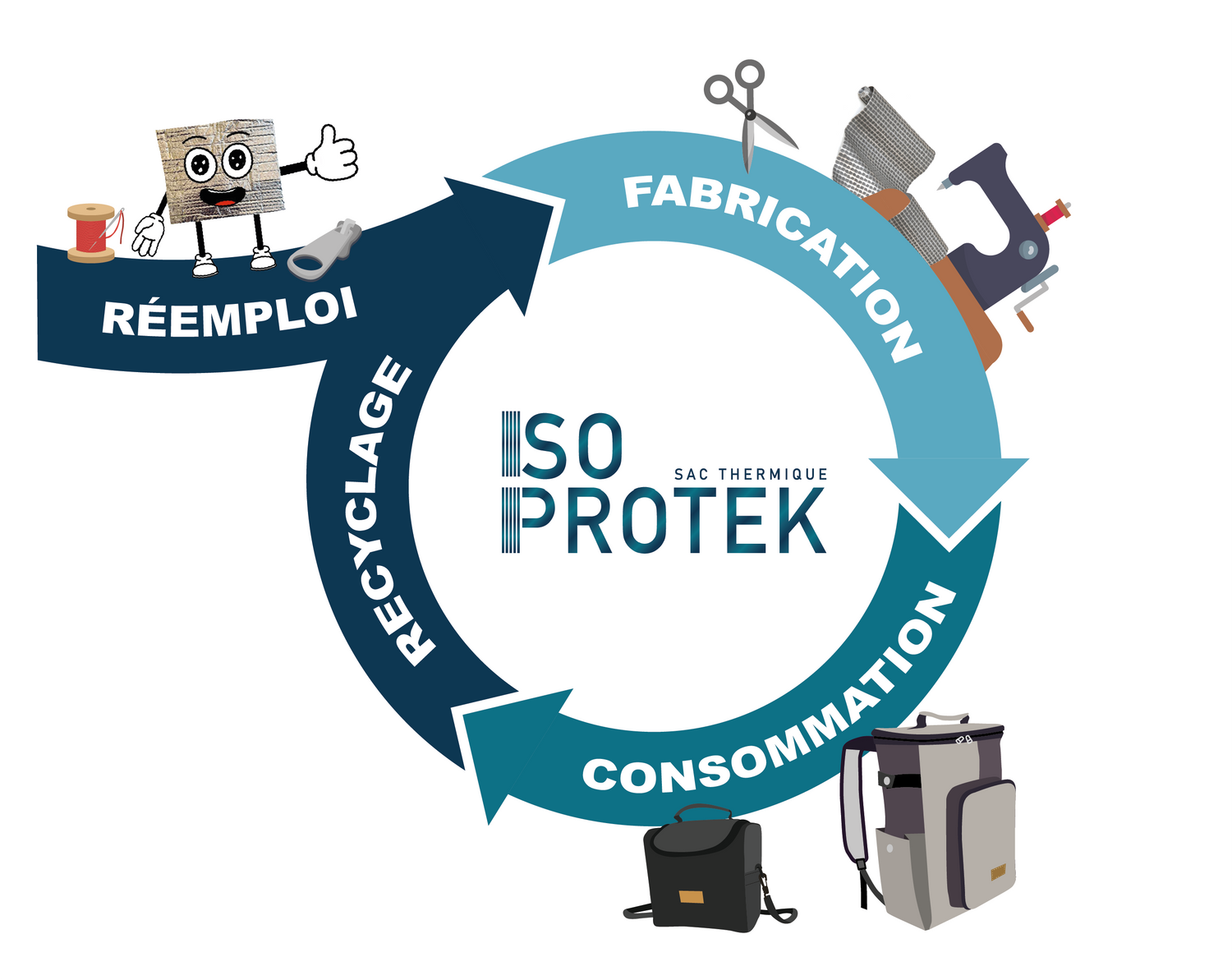 Nous sommes une entreprise en économie circulaire qui fabrique des sacs thermiques à partir de matériaux recyclés. Nous souhaitons inspirer le changement en encourageant le réemploi et l’engagement communautaire.